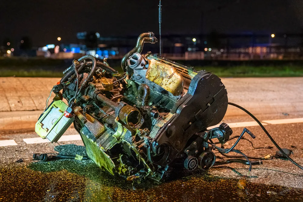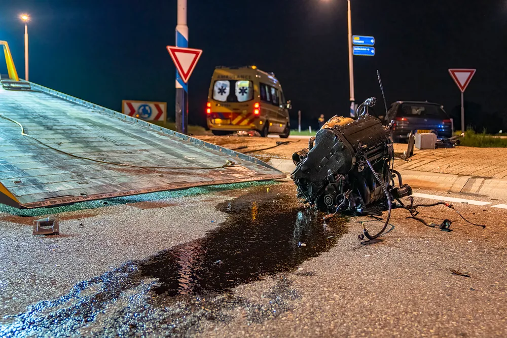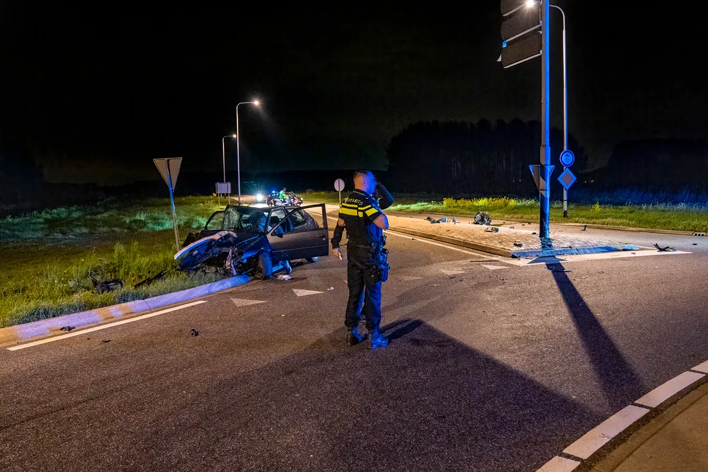Giessen - Een automobilist is in de nacht van zaterdag op zondag tegen een paal geklapt. Dit gebeurde omstreeks 01:25 uur op de rotonde van de N322 en de N267 bij Giessen. Door de enorme klap is het motorblok zo'n 20 meter verderop terecht gekomen.